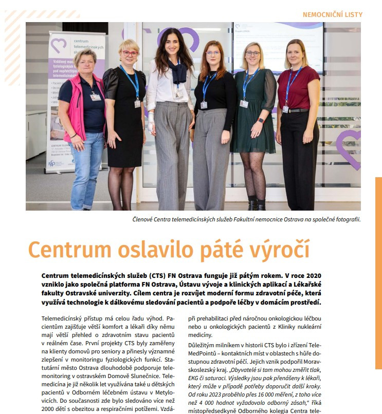 V zimním vydání Nemocničních listů FNO vyšel při příležitosti výročí otevření Centra telemedicínských služeb ve Fakultní nemocnici Ostrava článek, který vám přinášíme na následujících řádcích.